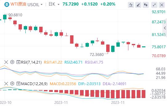 周五亚盘,原油交投于75.72附近。加沙地带开始计划休战,旨在允许以色列和哈马斯交换人质。因此,地缘政治紧张局势的缓解影响了油价,而油价通常会在中东风险中上涨。然而,石油空头还没有走出困境,因为即将到来的欧佩克+会议正在等待中,2024年的原油减产迫在眉睫。由于各国讨论石油产量水平,欧佩克+将会议从11月26日推迟到11月30日。