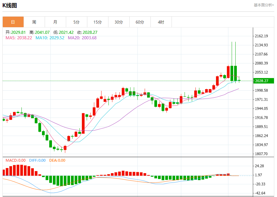 现货黄金:截止北京时间21:24,现货黄金下跌,现报2068.79,跌幅0.12%。纽市盘前,金价自早盘以来一直在窄幅震荡,在EMA50附近徘徊,等待恢复日内预期的熊市行情,目标主要看2000.00水平。