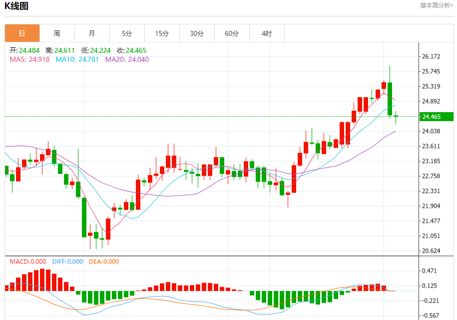 现货白银:截止北京时间21:24,现货白银下跌,现报24.466,跌幅0.04%。纽市盘前,白银价格保持稳定在24.60水平以下,保持熊市趋势情景今天有效和活跃,提醒您我们正在等待访问23.70水平作为下一个主要目标。