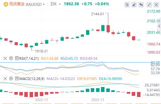 周二亚盘,黄金交投于1982.39附近。周一金价进一步下跌,跌回2000美元关口下方,缓步跌至1980美元附近,因为市场准备迎接周二新一轮的美国消费者物价指数通膨数据。周三,美联储(FED)将在周三公布2023年联准会最後一次利率决议。