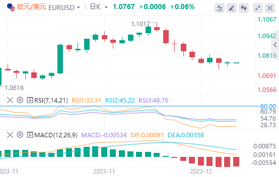 英镑:截止发稿,英镑/美元徘徊于1.2555附近。英镑/美元价格走势依然低迷,交易员正在等待周二公布的美国通胀数据。11月的消费者价格指数(CPI)预计将从0%上升到0.2%,而按年计算,预计将从3.2%下降到3.1%。不包括波动性项目,所谓的核心CPI预计将从0.2%上升到0.3%;每年保持4%不变。昨日英镑/美元上涨,收报1.2554,跌幅0.06%。技术面上,汇价上行的初步阻力位于1.2588,进一步阻力位于1.2623,关键阻力位于1.2658;汇价下行的初步支撑位于1.2519,进一步支撑位于1.2485,更关键支撑位于1.2450。