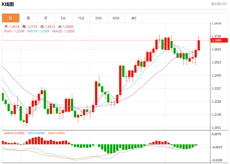 英镑/美元:截止北京时间21:27,英镑/美元上涨,现报1.2685,涨幅0.54%。纽市盘前,受随机负面因素影响,GBPUSD对现在显示出一些轻微的看跌倾向,等待获得积极的动机,以帮助推动价格恢复今天预期的看涨趋势,目标主要是1.2720。