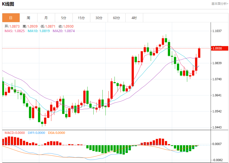 欧元/美元:截止北京时间21:27,欧元/美元上涨,现报1.0929,涨幅0.45%。欧元兑美元保持稳定在1.0860水平以上,以保持今天的牛市趋势,等待访问1.0960水平作为下一个主要目标,注意突破1.0960将延长牛市,在近期达到1.1080。