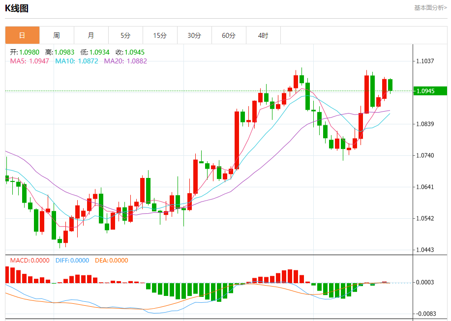 欧元/美元:截止北京时间21:20,欧元/美元下跌,现报1.0946,跌幅0.32%。纽市盘前,欧元兑美元正在测试关键支撑1.0960,这促使人们对即将到来的交易保持谨慎,因为价格需要保持在这一水平以上,以保持今天预期的积极情景有效,主要目标是1.1080区域。