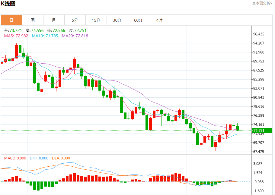 原油市场:截止北京时间21:20,美油下跌,现报72.765,跌幅1.40%。纽市盘前,原油价格目前显示出积极的交易,试图从73.73水平离开,加强了今天继续看涨趋势的预期,这是由随机的当前积极性推动的,等待更多的上涨以实现我们从75.90开始并延伸到77.86的主要目标,提醒你牛市的持续取决于73.73以上的价格稳定性。