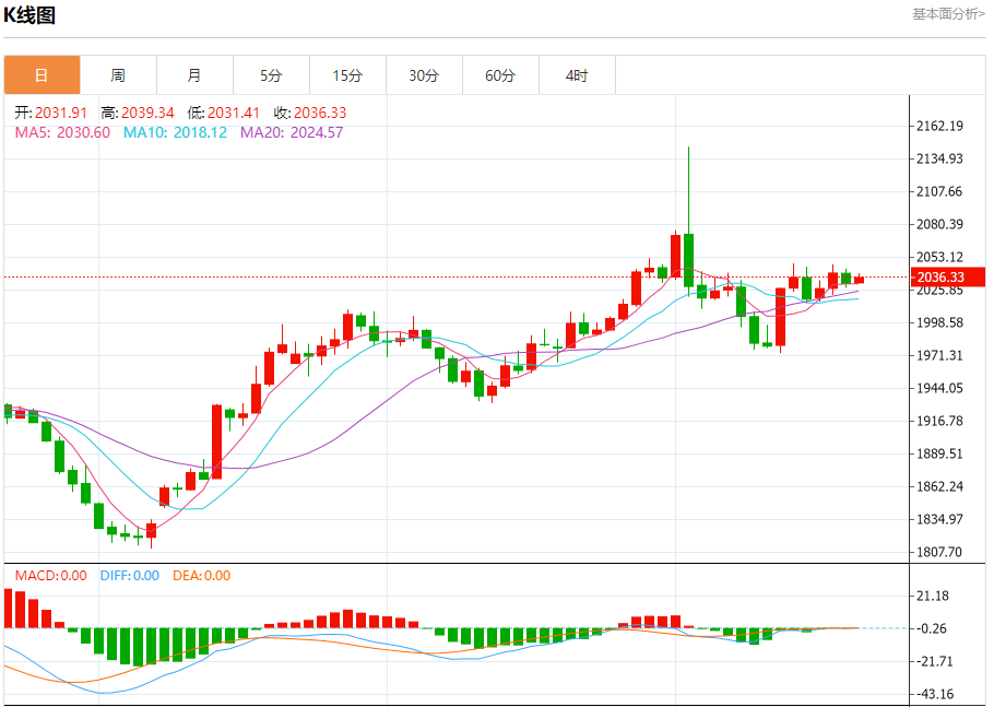 现货黄金:截止北京时间21:20,现货黄金上涨,现报2036.31,涨幅0.25%。纽市盘前,自上午以来,黄金价格交易一直处于窄幅波动中,注意到随机指标开始积极重叠,等待推动价格恢复牛市,目标是初步测试2065.70水平,注意到我们建议超越这一水平并获得额外收益,达到2100.00。