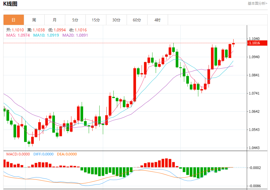 欧元/美元:截止北京时间21:20,欧元/美元上涨,现报1.1016,涨幅0.04%。纽市盘前,欧元对美元显示了新的积极交易,以支持今天预期的牛市趋势的延续,提醒你我们主要等待的目标位于1.1080,由下方支撑价格的EMA50支撑,提醒你牛市的延续取决于1.0960上方的价格稳定性。