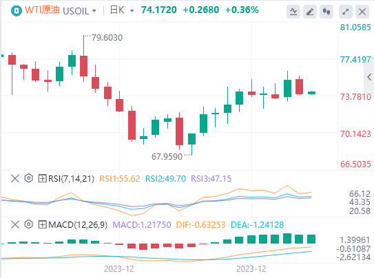 周四亚盘,原油交投于74.17附近。由于伊朗支持的胡塞叛军在也门袭击货船,红海运输取消,上周原油上涨2%以上,周三,西德克萨斯中质原油价格有所回落。胡塞叛军誓言要加快在该地区的袭击步伐,周二船只袭击事件有所增加,但此前暂停通过红海也门地区航道的物流公司,尽管发生了新的袭击,仍已返回该地区,跟随一支已进驻该地区的联合特遣部队,努力平息叛军活动。