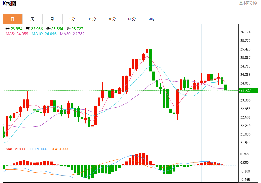 现货白银:截止北京时间21:20,现货白银下跌,现报23.727,跌幅0.97%。纽市盘前,白银价格提供了额外的负面交易以突破23.70水平,并试图保持在该水平以下,以暗示潜在的转跌,这使我们宁愿留在一旁,直到价格根据上述水平确认其状况,然后明确检测其下一个目的地。