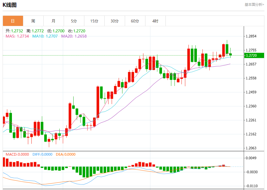 英镑/美元:截止北京时间21:20,英镑/美元下跌,现报1.2721,跌幅0.09%。纽市盘前,GBPUSD对显示新的负面交易来攻击1.2720水平并测试关键支撑1.2690,只要价格在这个水平之上,我们今天的看涨观点将保持有效,受到EMA50的支持,EMA 50保护上述通道内的交易,提醒你我们正在等待访问1.2880作为下一个主要目标。