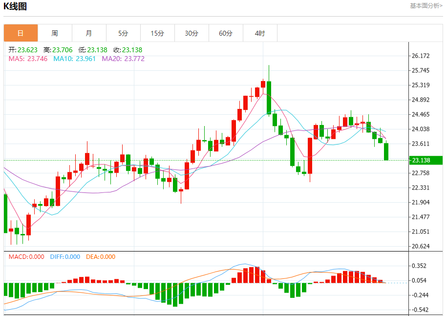 现货白银:截止北京时间21:20,现货白银下跌,现报23.141,跌幅2.11%。纽市盘前,白银价格开始突破图表上出现的头肩顶形态的颈线,强化了今天继续熊市趋势的预期,为走向23.00铺平了道路,这代表着我们的下一个主要目标,提醒您熊市的持续取决于23.70和24.00下方的价格稳定性。