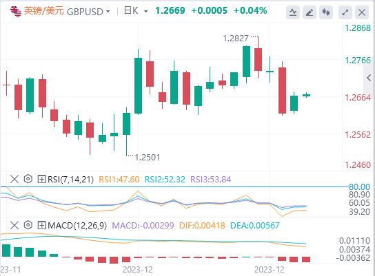 英镑:截止发稿,英镑/美元徘徊于1.2669附近。昨日英镑/美元上涨,收报1.2664,涨幅0.38%。对英国经济衰退的担忧和制造业疲软削弱了英镑的吸引力。标普全球周二公布的 12 月制造业采购经理人指数(PMI)从前值 46.4 降至 46.2。技术面上,英镑/美元昨日下跌并收于1.2625附近,但今日交易中并未延续看跌走势。该货币对维持在1.2625至1.2800范围内,因此交易者将等待进一步反应。如果该货币对能够强劲反弹,那么将继续在1.2625至1.2800之间盘整。从长期来看,该货币对的趋势仍然看涨,因此交易者将更倾向于积累多头头寸。