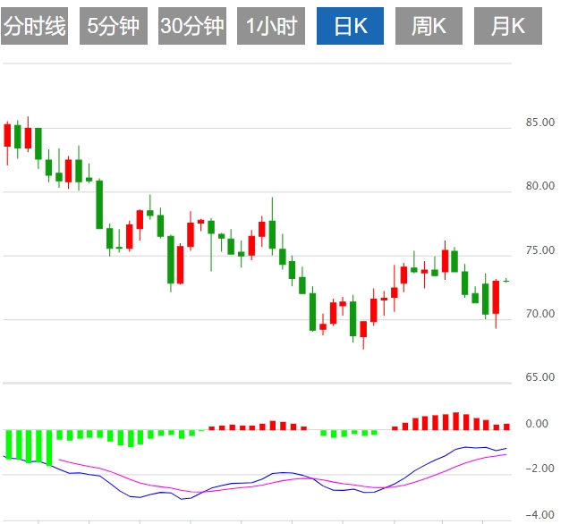 美原油:截止发稿,美原油上涨,现报73.39,涨幅0.55%。欧市盘前,由于红海海上安全紧张局势加剧,WTI原油价格飙升。周三公布的美国API原油库存报告进一步支撑油价。 数据显示,截止12月29日当周,美国原油库存大幅下降741.8万桶,高于市场共识的下降296.7万桶。 此外美国能源信息署将于周四公布美国原油库存报告。