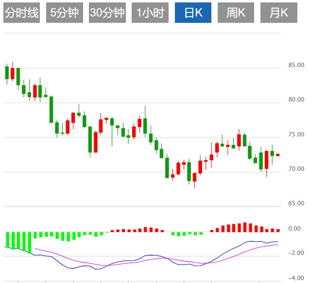 美原油:截止发稿,美原油走高,现报72.77,涨幅0.53%。欧市盘前,由于美国汽油和馏分油库存激增,引发了对需求稳定性的担忧,WTI出现下跌。 每周产品库存的大幅增加引发了人们对美国需求可能步入下降轨道的担忧。原油价格在以色列-加沙冲突紧张局势升级和利比亚油田中断事件的推动下一路飙升。 伊朗支持的胡塞武装向红海南部一艘驶往以色列的货柜船发射了两枚反舰弹道导弹,加剧了对供应的担忧。