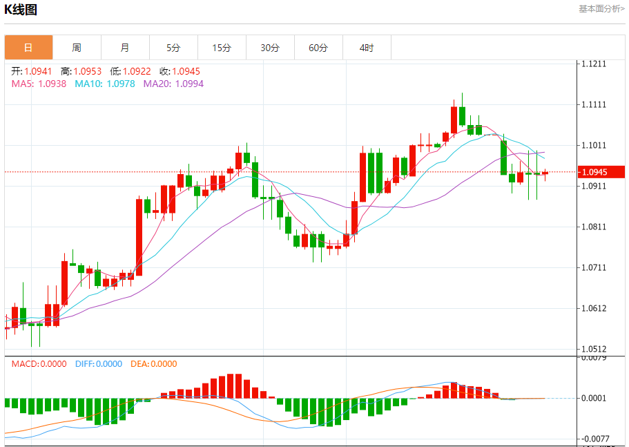 欧元/美元:截止北京时间21:20,欧元/美元上涨,现报1.0946,涨幅0.05%。纽市盘前,欧元对美元现在显示轻微的负交易,暗示今天继续预期的熊市趋势,目标是1.0860作为下一个主要位置。