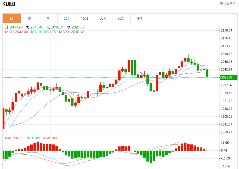 现货黄金:截止北京时间21:20,现货黄金下跌,现报2021.23,跌幅1.16%。纽市盘前,黄金价格显示出更多的看跌倾向,以接近我们等待的目标2016.90,我们建议继续施加负面压力,以打破这一水平,并打开通往下一个修正目标1977.46的道路。
