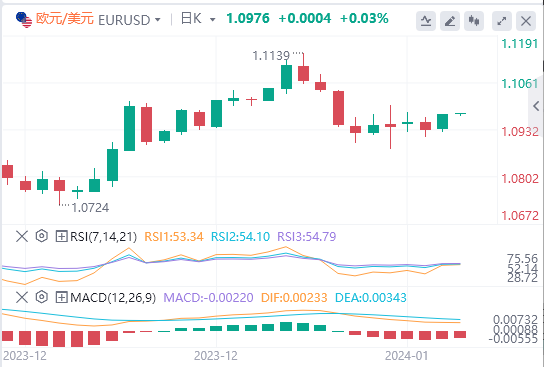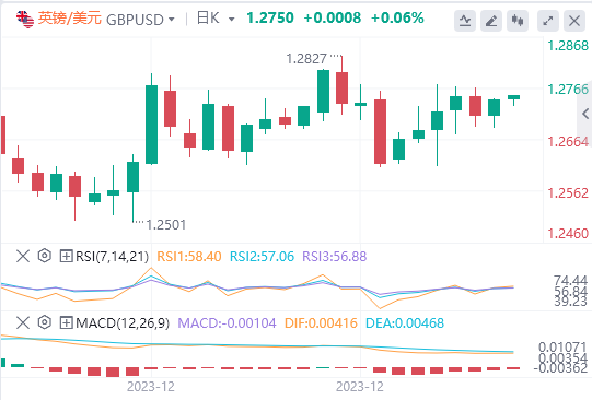 美元指数:截止发稿,美元指数交投于102.301附近。美元周三小幅下跌,在美元指数中跌至102.4,市场参与者坚持观望,等待驱动因素。交易大厅相对平静,没有任何重大报告在交易时段引发反应。焦点是定于周四公布的12月美国消费者价格指数。目前,市场押注2024年五次降息,基本上否定了美联储(Fed)仅75个基点的宽松预测。美国经济强劲的劳动力市场数据在很大程度上被疲软的美国ISM采购经理人指数所抵消,因此12月的CPI读数将在形成对央行宽松日历的预期方面发挥重要作用。技术面上,美元指数的RSI目前正处于正斜率,暗示着强劲的购买势头。MACD显示了上升的绿条,这进一步证实了这一点,这加强了该建筑的看涨势头。在日线图上,有迹象表明多头正在逐渐收复地盘。然而,转向SMA,在更广泛的范围内,它们提供了一个稍微矛盾的前景。尽管该对盘整在20日均线上方,支持了短期看涨观点,但仍位于100日均线和200日均线下方。这种布局表明,尽管短期内出现了牛市,但空头仍然掌控着整体趋势。