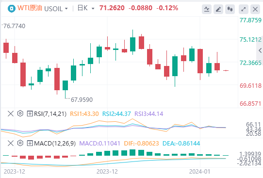 周四亚盘,原油交投于71.26附近。美国能源信息署(EIA)公布了最新的美国原油库存数据,显示原油桶数再次增加,以及供应线中石油衍生产品数量的激增,原油(WTI)从新的日高点下滑。周三原油价格飙升,此前有报道称,伊朗支持的伊朗胡塞叛乱分子对通往苏伊士运河的水道中的民用货船发动了迄今为止最大的一波袭击。胡塞武装向连接欧洲和亚洲之间补给线的关键水道上的船只发射了21架无人机和导弹。