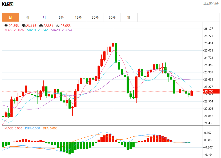 现货白银:截止北京时间21:20,现货白银上涨,现报23.052,涨幅0.77%。纽市盘前,白银价格显示了突破23.00水平的新尝试,而随机指标明显失去了到达超买区域的积极动力,以支持熊市反弹的机会,并恢复今天的预期熊市趋势,这取决于价格在上述水平以下的稳定性,注意主要预期目标位于22.25。