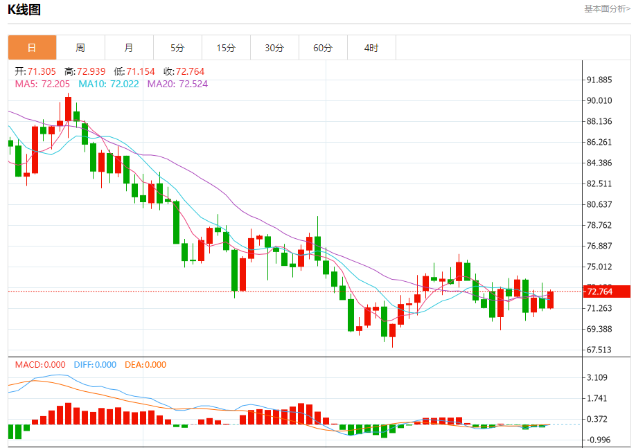 原油市场:截止北京时间21:20,美油上涨,现报72.855,涨幅2.19%。纽市盘前,原油价格显示出一些轻微的看跌倾向,以接近关键支撑70.80,EMA50形成负压,支持今天预期的看跌趋势的延续,其目标是从打破上述支撑开始,为走向70.00开辟道路,随后是近期的67.04水平。