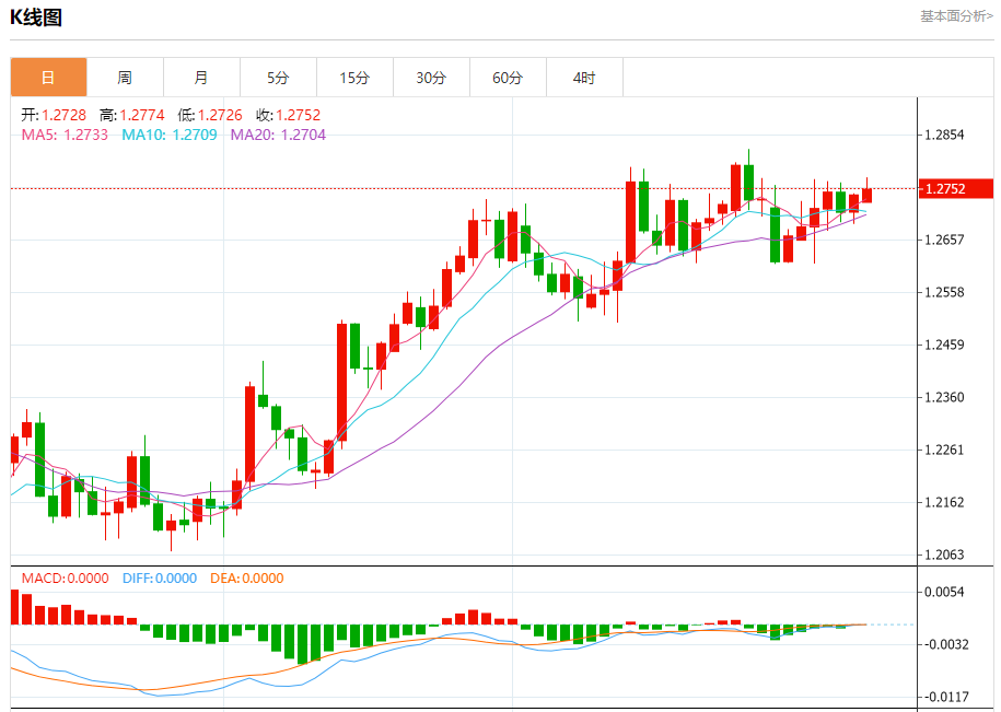 英镑/美元:截止北京时间21:20,英镑/美元上涨,现报1.2753,涨幅0.08%。纽市盘前,GBPUSD对稳定在看涨通道的支撑线上方,为了保持看涨趋势活跃,之前可能会受到随机利空的影响出现一些横向波动,等待恢复看涨偏差,以实现我们的下一个主要目标1.2880,提醒你保持在1.2720上方以继续预期的上涨是重要的。