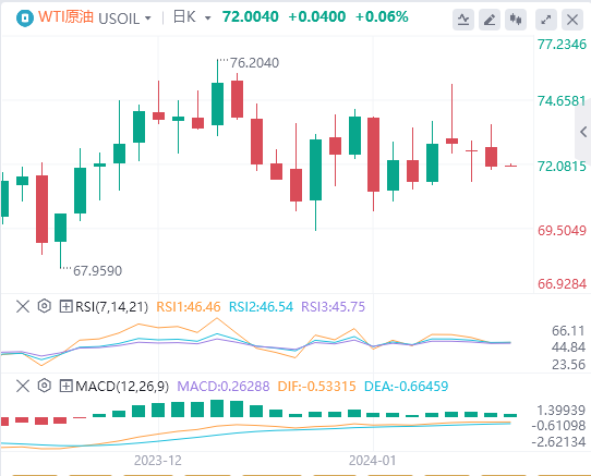 周三亚盘,原油交投于72.00附近。原油(WTI)周二大涨,交易价格略高于每桶72.00美元,原因是围绕胡塞武装在红海持续袭击民用货船的地缘政治担忧继续在可怕的、不均衡的市场行动中支撑桶油竞价。伊朗支持的胡塞叛乱分子继续发誓要袭击驶向苏伊士运河的民用货船,途经也门海岸,来自美国和英国的联军海军部队的前装攻击让能源交易商担心胡塞叛乱分子将继续瞄准通过连接欧洲和亚洲的关键水道的船只。