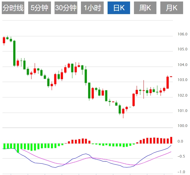 周三亚盘,美元指数高位震荡,美元指数周二(1月16日)上涨0.73%,为去年3月以来的最大涨幅,收报103.33,美元兑全球主要货币均走强。技术面来看,美元指数已经顶破了11月初以来的下跌通道。本交易日将迎来美国12月份零售销售月率,俗称“恐怖数据”,投资者需要重点关注。