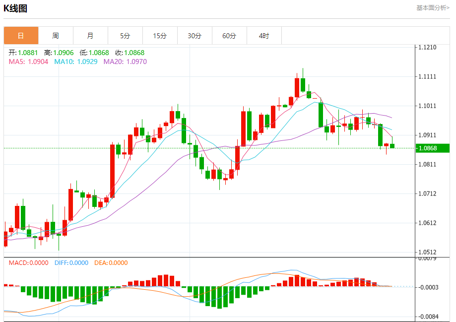 欧元/美元:截止北京时间21:23,欧元/美元下跌,现报1.0870,跌幅0.12%。纽市盘前,欧元兑美元现在面临着测试关键支撑位1.0860的负面压力,正如我们今天早上提到的那样,价格需要保持在这一水平以上才能保持看涨趋势,最初的目标是1.0960。