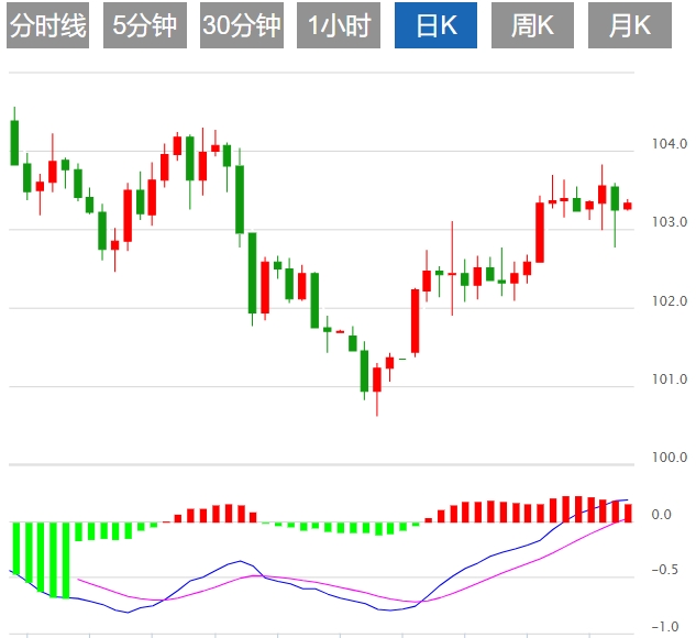 周四亚盘,美元指数震荡徘徊于103.34附近,美国经济保持强劲,交易员正等待本周晚些时候的关键数据和央行会议。尽管缺乏主要数据或任何美联储发言人,但市场将2024年的宽松预期从本月早些时候的近175个基点下调至约125个基点,这有助于美元复苏。