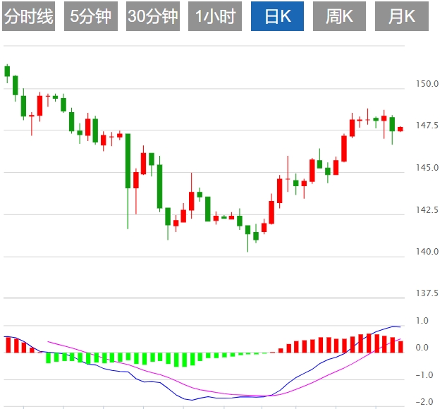 日本数据显示,东京1月份消费者价格指数(CPI)同比上涨1.6%,低于12月份的2.4%。与此同时,日本央行在政策会议纪要中表示,该成员同意他们必须耐心地维持宽松政策。美元/日元周五早盘小幅走高,最后一次交易略低于148.00。周五将还有美国的个人消费支出数据PEC公布,若通胀仍然保持着韧性,那恐怕会进一步降低急迫降息的概率,美元或也会由此继续获得支撑。美元兑日元虽然受周初日本央行总裁的鹰派表态有所回落,但幅度显得有限,且整体还是处于一众冲高整理的走势形态。