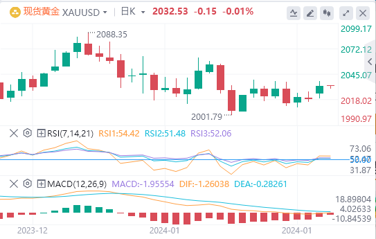 周二亚盘,黄金交投于2032.53附近。在周三美联储(Fed)货币政策决定之前,市场参与者仍保持谨慎。美元当日走高,但由于美国国债收益率下跌,收盘时基本持平于103.47。因此,随着中东地缘政治风险的上升,黄金上涨。对此,白宫不会容忍对约旦的美国公民进行无人机袭击,造成三名军人死亡,34人受伤,美国国防部长劳埃德·奥斯汀说:“总统和我不会容忍对美军的袭击,我们将采取一切必要行动保卫美国和我们的军队。
