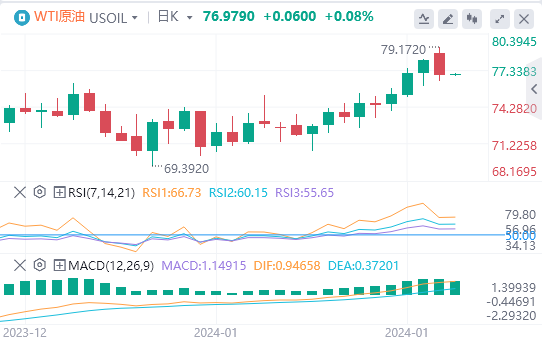 周二亚盘,原油交投于76.97附近。原油(WTI)周一大幅下跌超过1.50%,此前未能突破关键的技术阻力位,以及中国房地产危机引发的需求困境。尽管中东紧张局势加剧,但交易员正在为美联储(Fed)保持美元强势的决定做准备。