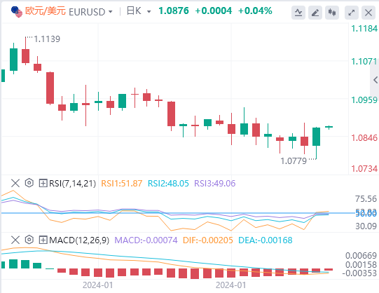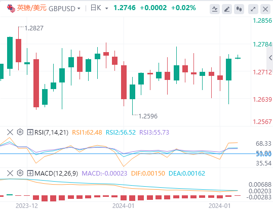 美元指数:截止发稿,美元指数交投于103.031附近。由于周四公布的疲软劳动力市场数据盖过了强劲的ISM采购经理人指数。市场仍在消化美联储主席杰罗姆·鲍威尔(JeromePowell)周三的言论,这帮助该指数跃升至103.80。美联储鲍威尔主席重申,尽管市场猜测持续,但3月份降息的可能性不大。尽管如此,他指出,利率调整仍然主要取决于数据,即将到来的就业数据决定了美元的步伐和短期预期。技术面上,日线图上的指标反映了短期内抛售势头的暂时主导地位。RSI虽然处于负斜率,但仍处于正值区域,反映出购买势头减弱。MACD指标进一步支持了这一点,该指标显示绿柱线减少,这表明抛售压力正在缓慢增加。