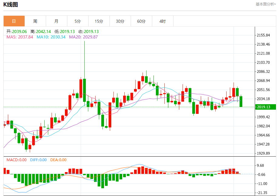 现货黄金:截止北京时间21:25,现货黄金下跌,现报2018.08,跌幅1.05%。纽市盘前,金价持续下跌至2016.90水平,正如我们今天上午提到的那样,价格需要保持在这一水平以上,以保持看涨趋势的有效性和活跃性,并通过随机触及超卖区域来支撑,等待强劲反弹至2065.70作为主要目标。