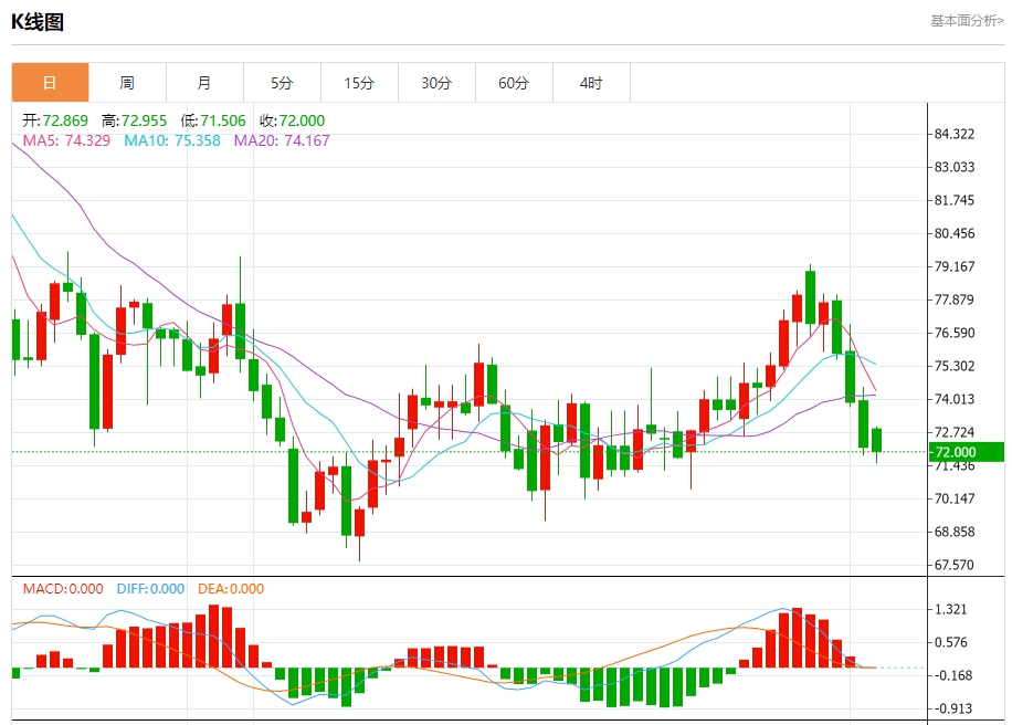 原油市场:截止北京时间21:25,美油下跌,现报71.990,跌幅0.44%。纽市盘前,原油价格恢复其负面交易,以实现我们等待的71.75的目标,并对其施加负面压力,强化了继续主导看跌趋势的预期,并为我们下一个达到70.00的目标开辟了道路。