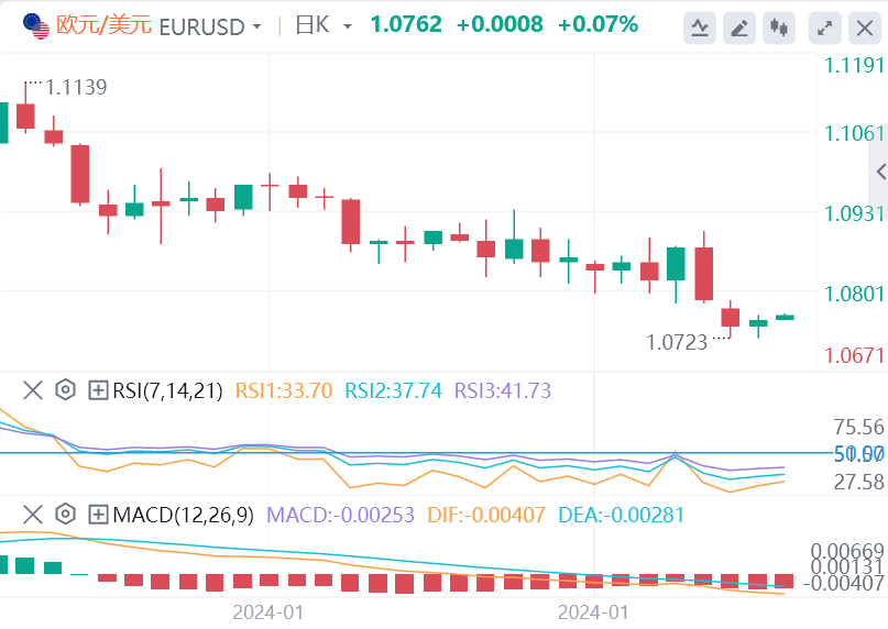 欧元:截止发稿,欧元/美元徘徊于1.0762近。欧元/美元周二上涨,收报1.0754,涨幅0.11%。投资者等待各国央行何时开始降息的进一步迹象,而更广泛的市场将重点放在利率活动上。欧洲经济数据好于预期,但仍普遍暴露出欧洲国内经济疲软,势头仍然有限,美元(USD)在周中出现软性回调。技术面上,汇价上行的初步阻力位于1.0770,进一步阻力位于1.0785,关键阻力位于1.0809;汇价下行的初步支撑位于1.0731,进一步支撑位于1.0707,更关键支撑位于1.0692。