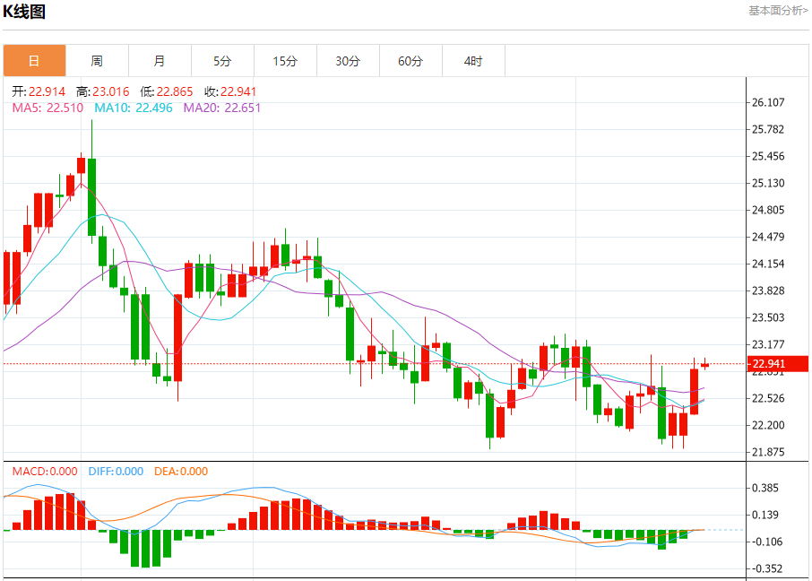 现货白银:截止北京时间21:21,现货白银上涨,现报22.939,涨幅0.15%。纽市盘前,白银价格徘徊在23.00水平附近,并在那里找到坚实的阻力,等待获得积极的动机,帮助推动价格突破这一水平,并确认将牛市延伸到23.70作为下一个主站。