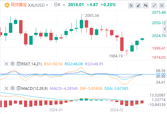 周一亚盘,黄金交投于2018.01附近。黄金在周一亚盘时段保持在2000美元上方。美国经济数据显示通胀比预期的更具粘性,并促使金融市场回落了美联储将在6月开始降息的预期。最终需求生产者价格指数(PPI)从12月的0.1%环比上涨0.3%,为2023年8月以来的最大涨幅。按年计算,PPI数据从前值的1.0%同比攀升0.9%。与此同时,美国新屋开工率从1.562M下降-14.8%至1.331M,而建筑许可下降-1.5%。