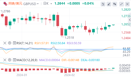 英镑:截止发稿,英镑/美元徘徊于1.2644附近。英镑/美元周三上涨,收报1.2637,涨幅0.12%。英国央行(BoE)政策制定者SwatiDhingra周三表示,推迟降息是以生活水平为代价的,并可能引发英国经济硬着陆。Dhingra进一步表示,英国的通胀已经处于稳步下降的轨道上,因为她重申了放松货币政策的理由。技术面上,汇价上行的初步阻力位于1.2652,进一步阻力位于1.2667,关键阻力位于1.2691;汇价下行的初步支撑位于1.2613,进一步支撑位于1.2589,更关键支撑位于1.2574。