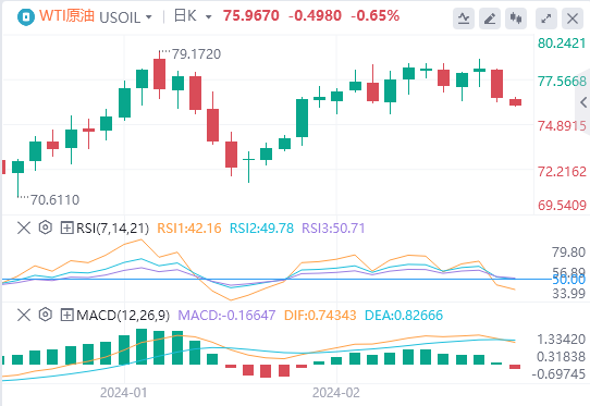 周一亚盘,原油交投于75.96附近。根据彭博社的一项调查,观察石油输出国组织(欧佩克)的分析师预计,原油卡特尔将从第一季度延长到2024年第二季度的大幅减产。欧佩克在2023年底在其成员国实施了大幅的原油产量上限,但随着能源市场全力关注全球非欧佩克产量并密切关注持续的地缘政治头条新闻,限制全球原油供应以支撑桶价的尝试继续遇到重大阻力。