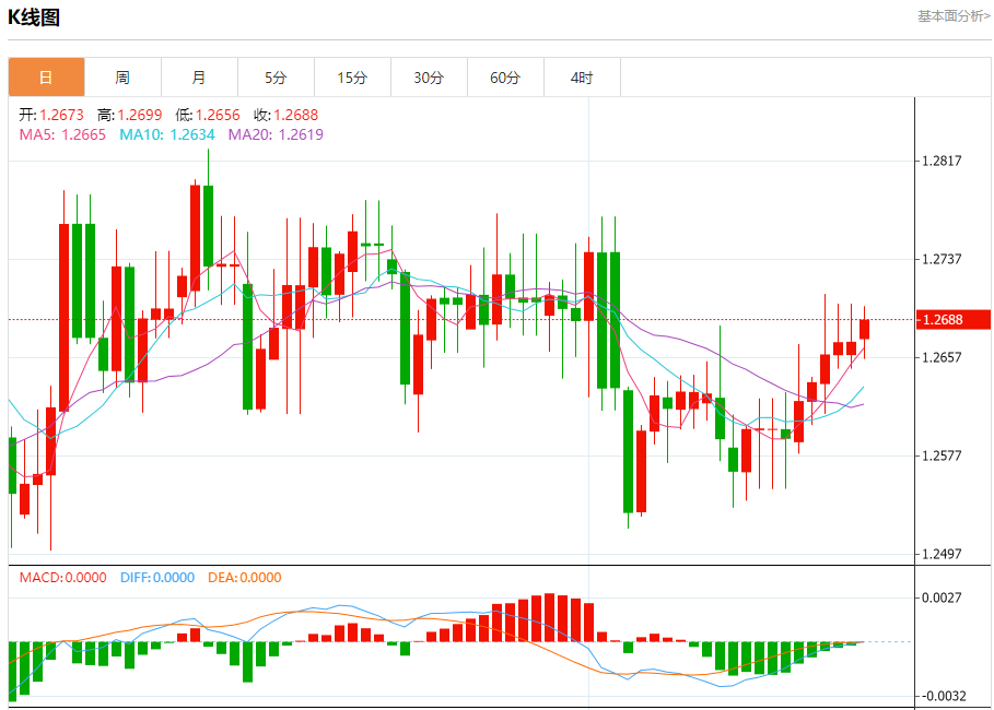 英镑/美元:截止北京时间21:28,英镑/美元上涨,现报1.2689,涨幅0.14%。纽市盘前,GBPUSD货币对以轻微的积极性交易,试图恢复今天预期的看涨趋势,该趋势受到EMA50的支撑,主要等待访问1.2760和1.2827水平。