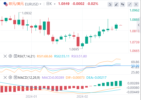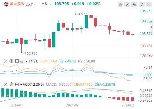 美元指数:截止发稿,美元指数交投于103.79附近。表现不佳是在美国公布疲软的 1 月份住房数据之后出现的,而美联储 (Fed) 对过早降息表示犹豫可能会限制下行空间。展望未来,投资者正等待即将发布的重大报告,以进一步了解经济健康状况,包括本周晚些时候的核心和个人消费支出(PCE)以及国内生产总值(GDP)的修订。技术面上,迄今为止,美元指数仍能维持在200日移动平均线附近。下一步走势将由指数的反应决定。若指数再次出现强劲的牛市动能而反弹上涨,则可能延续牛市行情。相反,若指数在强烈的空头压力下跌破200日移动平均线,则空头趋势可能继续。
