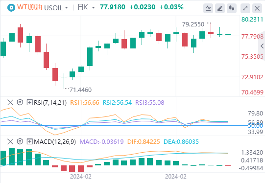 周五亚盘,原油交投于77.91附近。美国能源情报署(EIA)和美国石油协会(API)本周公布的美国原油桶数显示,美国原油供应进一步增加量。在美国创纪录原油产量的背景下,原油库存稳步增加,限制了西德克萨斯中质原油的上涨潜力。继未能突破79.00美元关口后,WTI油价一直难以维持在看涨范围。