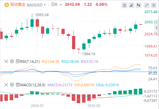 周五亚盘,黄金交投于2042.89附近。本周最受期待的报告终于发布,美国经济分析局公布了核心PCE报告。年度数据符合预期,通胀率从12月的2.9%放缓至1月的2.8%。1月整体通胀率同比大幅降温,从2.6%降至2.4%,与市场预期一致。该数据支持金价上涨,此前美国国债收益率因预期降息可能早于预期而暴跌。数据公布后,CME FedWatch工具衡量的利率概率表明,交易员预计6月份将首次降息。