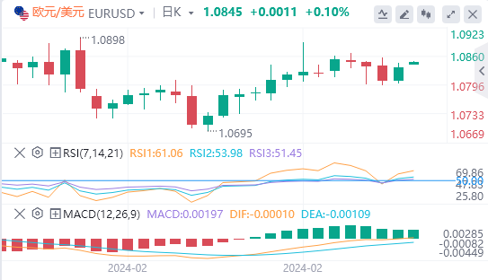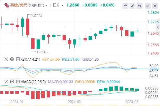 英镑:截止发稿,英镑/美元徘徊于1.2660附近。英镑/美元上周五上涨,收报1.2655,涨幅0.24%。由于美国联邦储备委员会(美联储)推迟降息的预期继续支撑着美元,英镑未能维持前一周的上涨势头,并受制于美元的小幅反弹。技术面上,英镑/美元近期似乎是"逢低买入"交易。该货币对在多次面临1.2700的阻力后,正紧紧抓住21日简单移动平均线(SMA)1.2622。14天相对强弱指数(RSI)略低于50水平,表明英镑/美元在买家入场前可能会出现一些疲软。