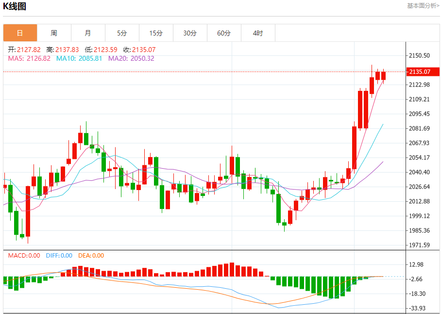 现货黄金:截止北京时间21:27,现货黄金上涨,现报2135.03,涨幅0.33%。纽市盘前,自上午以来,金价没有表现出任何强劲的走势,并继续在2125.00水平附近波动,等待恢复负面交易并主要前往2104.20和2082.25水平。