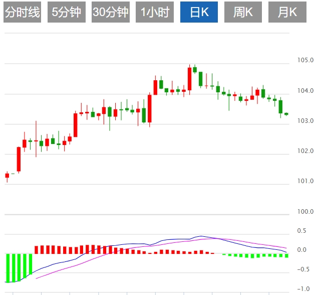 美元指数:截止发稿,美元指数走低,现报103.30,跌幅0.06%。美联储主席鲍威尔在美国国会众议院金融服务委员会作证时指出,美联储认为今年美国经济衰退的风险不会增加。 预计这位美国央行行长将在周四美联储半年度货币政策报告的第二天发表进一步评论。技术上,100 日简单移动平均线 (SMA) 在 103.88 附近周二被打破,尽管它仍然需要日收盘价高于该水平才能发出看涨信号。如果美元能够突破该目标,104.60将是下一个第一个目标。坚实的一步突破了105.88,这是2023年11月以来的高点。最终,2023年的高点107.20可能会重新回到范围内。