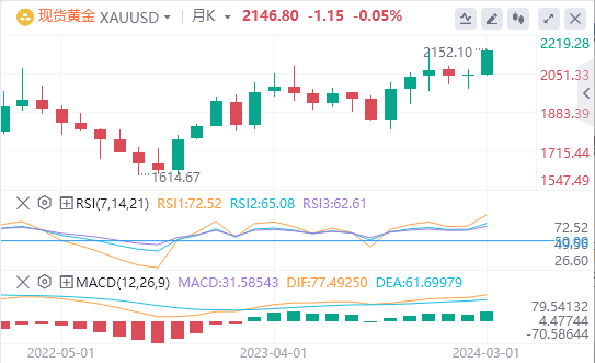 周四亚盘,黄金交投于2146.80附近。在美联储主席杰罗姆·鲍威尔(JeromePowell)在国会山的国会作证期间,黄金连续第五天上涨,并在北美时段达到历史新高(ATH)至2,152.24美元。在杰罗姆·鲍威尔(JeromePowell)发表讲话后,黄金大幅上涨,鲍威尔表示,美国央行准备“在今年的某个时候”降低借贷成本。他补充说,美国经济远未陷入衰退,并预计通胀将继续朝着2%的目标迈进。鲍威尔评论说,美联储将继续依赖数据,在他们(美联储)确信通胀可持续地升至2%之前,不会降息。