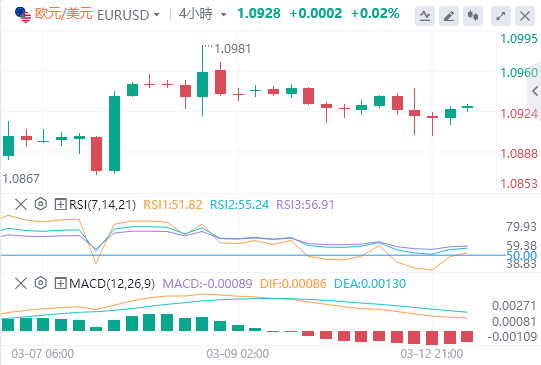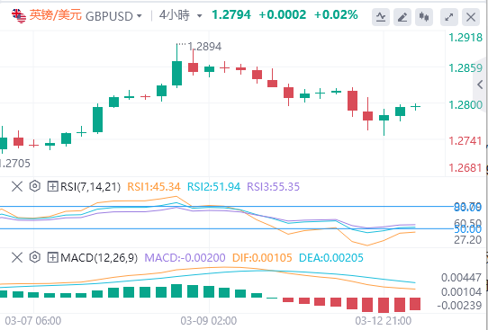 美元指数:截止发稿,美元指数交投于102.899附近。尽管美国消费者价格指数(CPI)数据火爆,但该指数仍接近12月的低点。在美国劳动力市场公布2月份数据喜忧参半之后,火热的CPI数据未能引发预期的重大变化。市场仍预计美联储将从6月开始在2024年加息75个基点。技术面上,技术前景显示出不断升级的看涨势头。相对强弱指数(RSI)强调的持续升级描绘了更明显的买入势头,尽管它处于负值区域,表明潜在的看涨市场逆转。这与移动平均收敛散度(MACD)的红色条线下降相结合,表明抛售压力正在小幅下降。