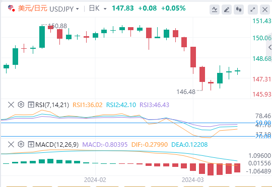 当天早些时候,路透社报道称,日本最大的产业工会UAZensen宣布,231家企业的平均加薪幅度达到了2013年以来的最大值。美元兑日元在周三收盘几乎持平后,继续在148.00下方的窄幅区间内上下波动。